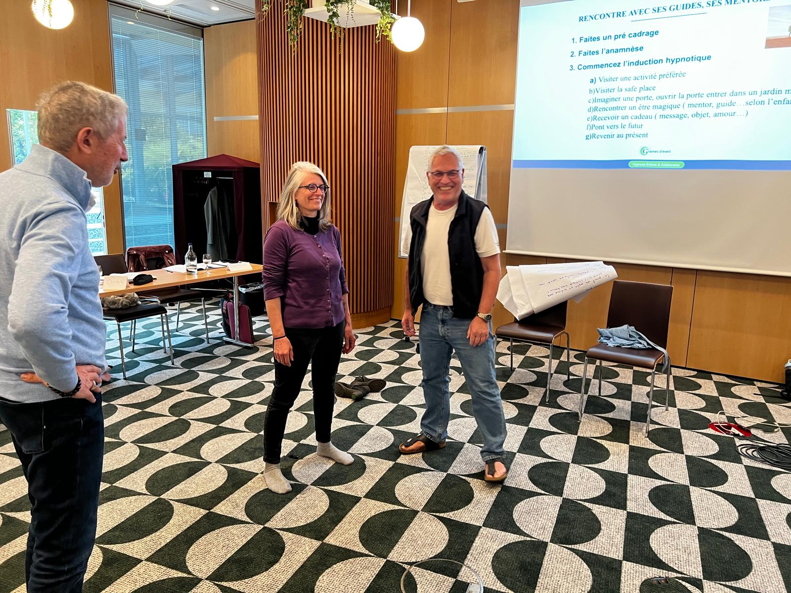 Toutes nos formations alternent parfaitement théorie, démonstration et pratique. Apprendre la PNL, l’hypnose et le coaching, c’est un peu comme apprendre à conduire une voiture: Si vous ne faites que de la théorie, vous n’allez pas bien loin avec votre voiture! C’est pourquoi nous mettons un accent tout particulier sur la pratique en binômes et en groupes. Chaque outil enseigné est directement mis en pratique pendant la formation.